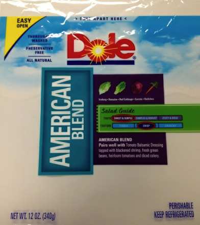 Dole Fresh Vegetables is recalling a limited number of cases of Dole American Blend Salad because it may be contaminated with Listeria monocytogenes. No illnesses have been reported in connection with the consumption of this product.