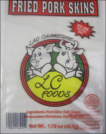 Recalled products include 3-ounce and 8-ounce package containing “Pork Snack Stick”, 3.20-ounce packages of “Seasoned Fried Beef”, 1.76-ounce packages of “Fried Pork Skins”, and 1.20-ounce packages of “Sliced Fried Pork Ears.” Each package has the establishment number “EST. 13479” inside the USDA mark of inspection. There are no production or expiration dates on the products in commerce. You can see all of the product labels at the USDA site (scroll down).
