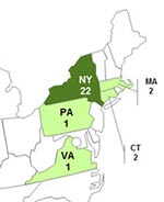 By state, the number of those ill is as follows: Connecticut (2), Massachusetts (2), New York (22), Pennsylvania (1), and Virginia (1). Among patients for whom information is available, illness onset dates ranged from October 18, 2012 to November 3, 2012. Case patients range in age from 4 to 66 years old. The median age is 24 years years old. Sixty-eight percent of those sickened are female.