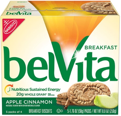The recalled products are belVita Breakfast Biscuit Chocolate Variety in 1.76 ounce packages, with UPC number 044000 03192 3 and best by dates of 12 Jan 13 – 29 Sep 13. Also recalled are Chocolate Variety in 8.8 ounce packages with UPC number 0 44000 03194 7 and best by dates of 21 Jan 13 – 29 Sep 13. Chocolate Variety in 14.08 size is also recalled, with UPC number 0 44000 03163 3 and best by dates of 16 May 13 – 13 Sep 13. The Apple Cinnamon Variety in 1.76 ounce packages is also recalled, with UPC number of 0 44000 02824 4 and best by dates of 8 Oct 12 – 2 Sep 13. Finally, the Apple Cinnamon Variety in 8.8 ounce packages is recalled with UPC number 0 44000 02825 1 and best by dates of 8 Oct 12 – 2 Sep 13.