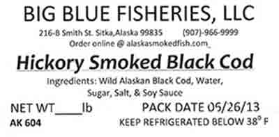 The recalled products were sold in vacuum packed plastic packages with labels located on the front that include the pack date 9/24/11 and 9/24/13 and AK#604. They include: Pepper Smoked King Salmon ½lb to 1 lb Between, Hickory Smoked King Salmon, Teriyaki Smoked King Salmon, Hickory Smoked Black Cod, Smoked Coho Salmon Bellies, Smoked King Salmon Bellies, Hickory Smoked Coho Salmon, Pepper Smoked Coho Salmon, Teriyaki Smoked Coho Salmon, Smoked Wild Silver (Coho) Salmon Filet 1lb to 2.5lbs, Variety Smoke Pack 1.5lbs.