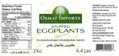 The Canadian Food Inspection Agency (CFIA) is recalling Osmat Imports brand Stuffed Eggplant because it may be contaminated with Clostridium botulinum. This bacteria produces a toxin that causes serious illness and death. No illnesses have been reported in connection with the consumption of this product.