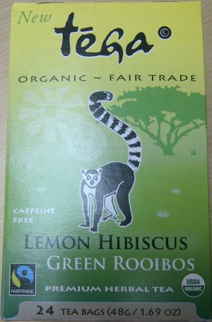 The tea is Organic Lemon Hibiscus Green Rooibos Herbal Tea. Each package contains 24 tea bags (48 g/1.69 ounce). The UPC number is 6 64322 10406 0, and best before dates are 2014FE01, 2014MR27, and 2014MR28. The tea as distributed in Alberta, British Columbia, Manitoba, Ontario, Quebec, and Saskatchewan.