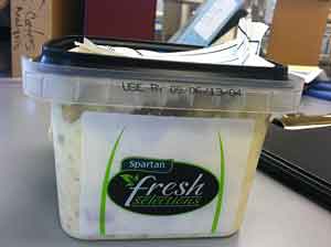 The products being recalled are Spartan Fresh Selections American Potato Salad in square 16 oz. plastic retail containers with a UPC Code Number 0 11213 90320 0 and a USE BY DATE of 09/06/13/04. The problem was discovered during routine testing.