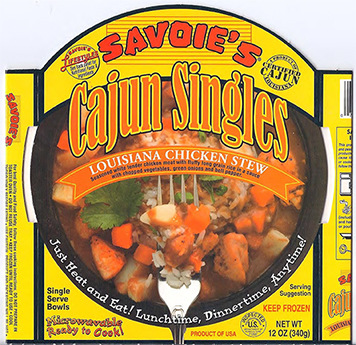Also recalled are 12-ounce single-serve bowls of “Savoie’s Cajun Singles Louisiana Chicken Stew” bearing the establishment number “P-13587” inside the USDA mark of inspection. The product was produced on dates from June 6, 2012 through February 25, 2013. The packages have “use by” dates from June 6, 2013 through February 25, 2014.