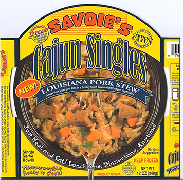 The recalled products are 12-ounce single-serve bowls of “Savoie’s Cajun Singles Louisiana Pork Stew” with the establishment number “Est. 13587” inside the USDA mark of inspection. The stew was made on various dates from May 24, 2012 through March 21, 2013. The product packages have “use by” dates from May 24, 2013 through March 21, 2014.