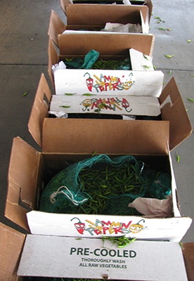 The Thai peppers were distributed on April 7, 2013 to April 10, 2013 to retail markets in California. The product comes in a 25 pound white wax box with a logo that says “JAMMIN PEPPERS”. FDA testing found the pathogenic bacteria in some of the boxes. Production of the product is suspended while the FDA investigates to find the source.
