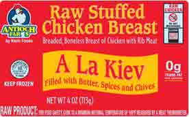 A Salmonella outbreak linked to Antioch Farms frozen chicken Kiev that has sickened at least six people in Minnesota likely arose from mistaken identity. Some brands of frozen chicken kiev are fully cooked and just need to be heated. The frozen entrees associated with this outbreak were pre-browned but raw, as stated on the label.