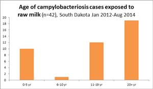 The South Dakota Department of Health tracked Campylobacter cases from January 2012 to August 30, 2014. Of the 791 total cases of campylobacteriosis reported during that period, 42 were associated with raw milk, or about 5 percent.